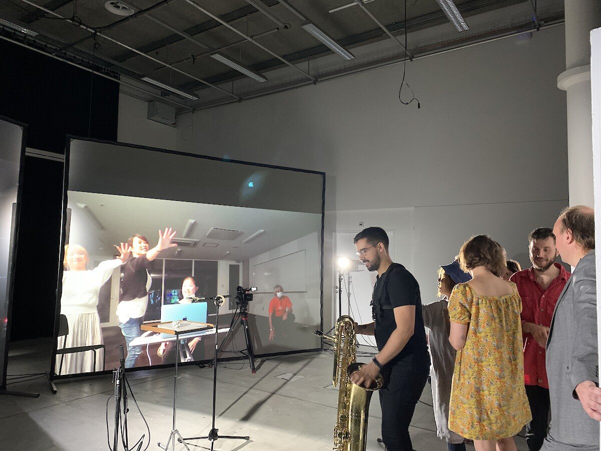 With the Telematic Connection between three hubs (Singapore, Zurich, Kioto), more than 21 students have developed a final performance, where three groups were performing and interacting for a physical present as well as online connected audience during this 10 day Summer School.