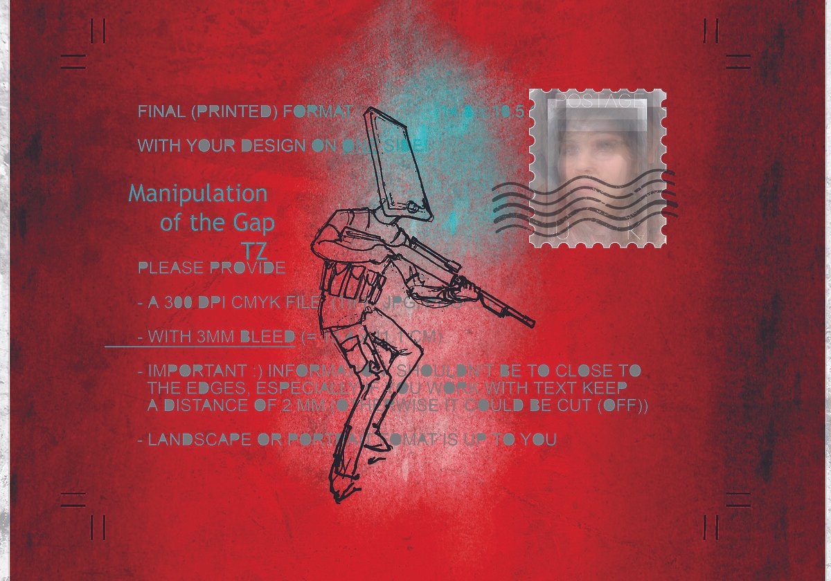 Lost in the all interconnectivity, ‘D’ seeks to find a way. We are never in control. Even as we try to control. Armed, stupid and dangerous. The illustration here is a sketch made by Tzang in a stream of consciousness style while listening in to the lectures in the Art of the Gap. For the postcard, Tzang chose to carry a ‘stamp’ created by fellow participant Claire Weiner as a way to show how interconnected we are, and how we carry each other’s ideas in our own work, even as we fight our own battles.