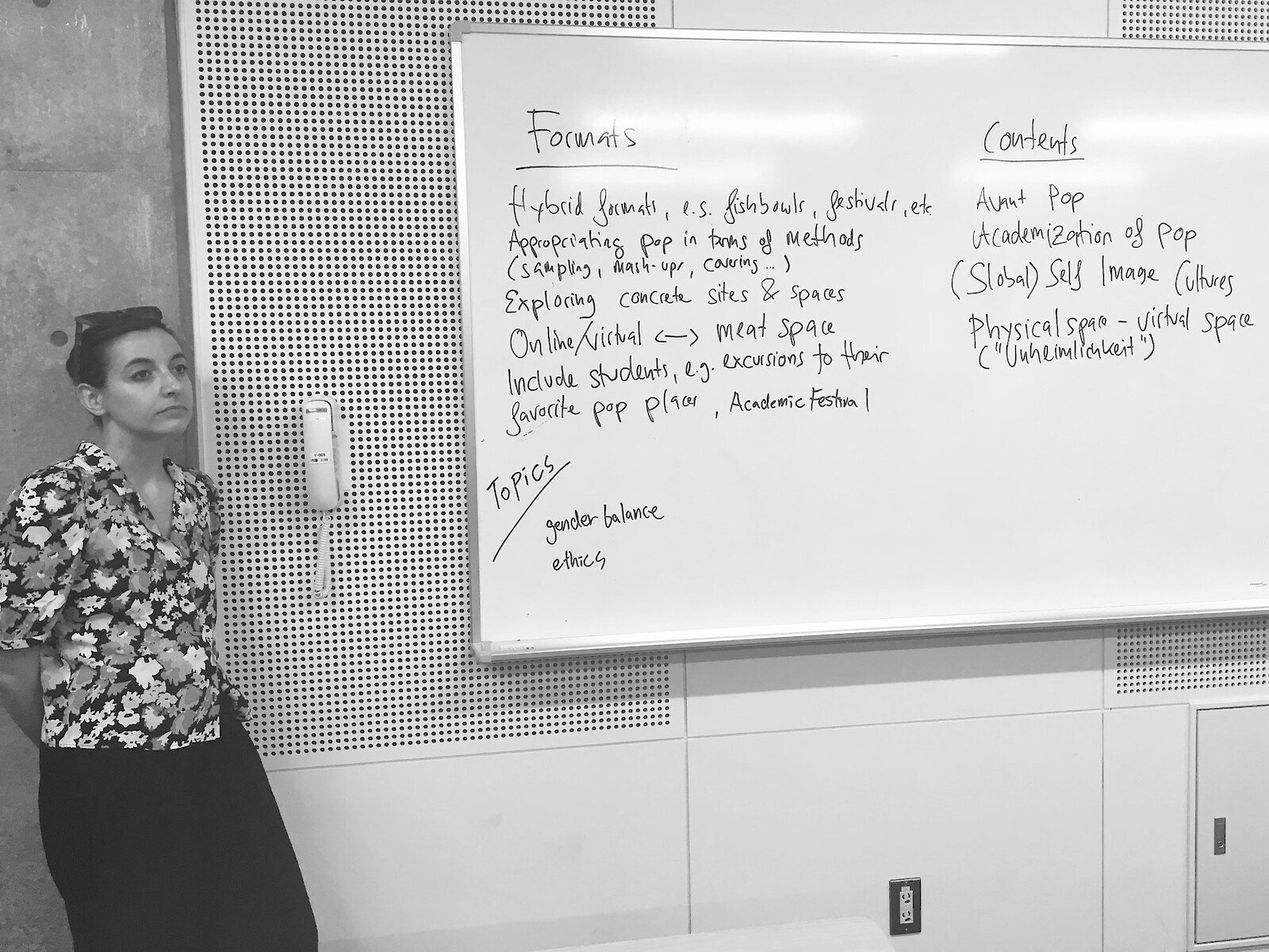 Additionally, possible future projects were being discussed in a final workshop where self-imaging was chosen as a joint research topic. How is the self imagined, staged, presented, and transformed in specific contexts? These and similar questions will be addressed in various formats, through new and conventional artistic and academic research, including an “Academic Festival” as an experimental and hybrid mediation format that aims at broadening the understanding of pop culture(s).