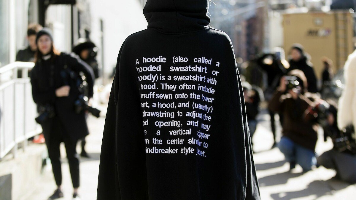 As a part of Vetements 2017 fall collection, the brand produced a hoodie with the dictionary(sequence) description of the word ‘ hoodie’.