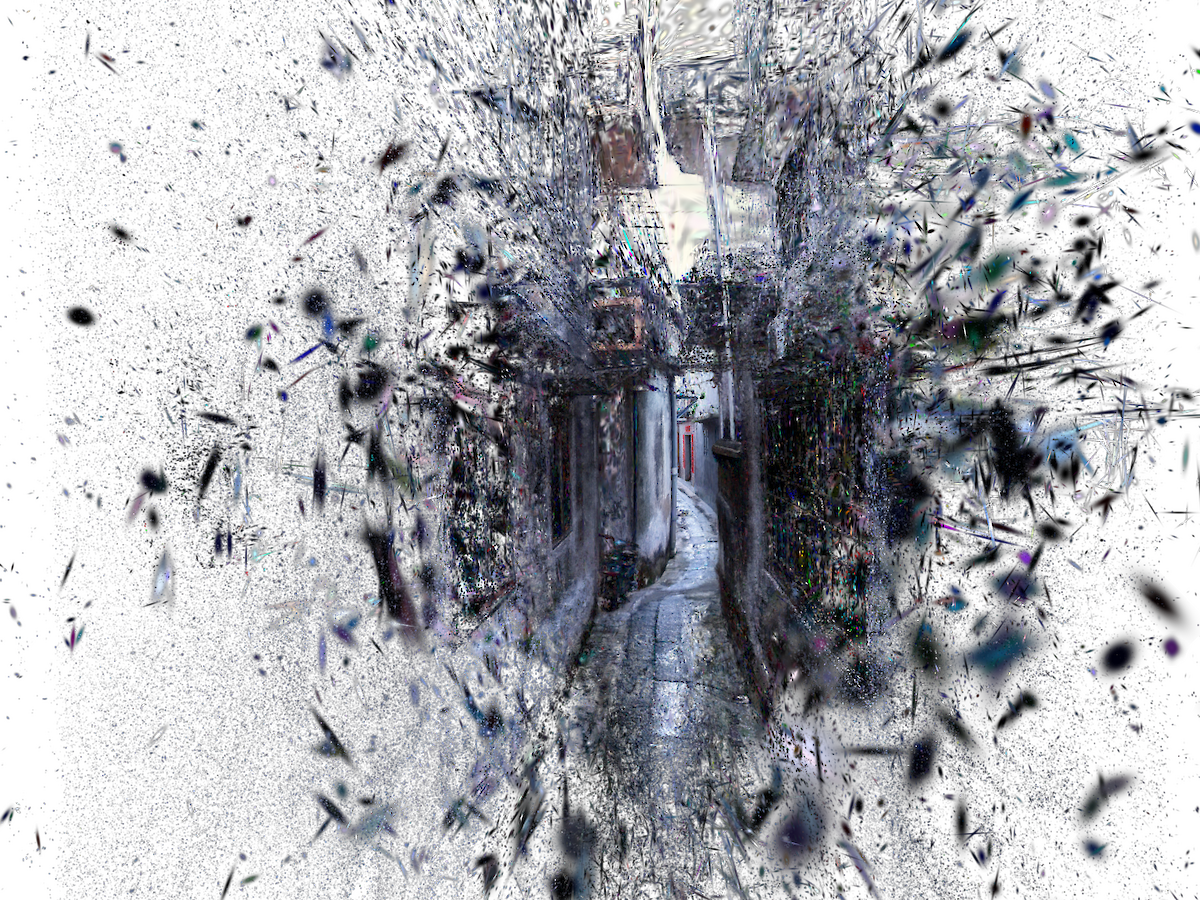 3DGS at 50% gradient descent training, covariance matrix and displacement modified. Michael Just, 2024