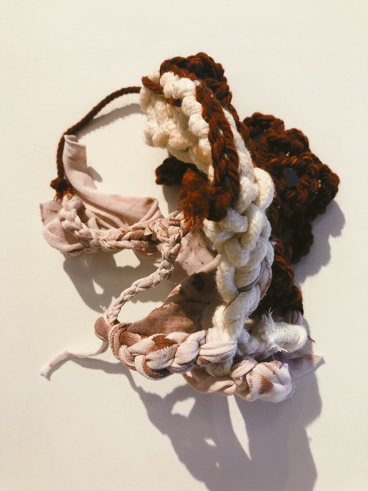 Working with crochet as our chosen craft technique we want to highlight the practice’s characteristics of sharing knowledge, mending or connecting material as well as relations through time and attention, and caring on an ecological, cultural and interpersonal level. Practicing crochet in a synchronic approach via digital platforms became a connective craft that transcended locational and temporal boundaries; creating a powerful shared experience that interlinked the members of our group despite being in three different countries and timezones.