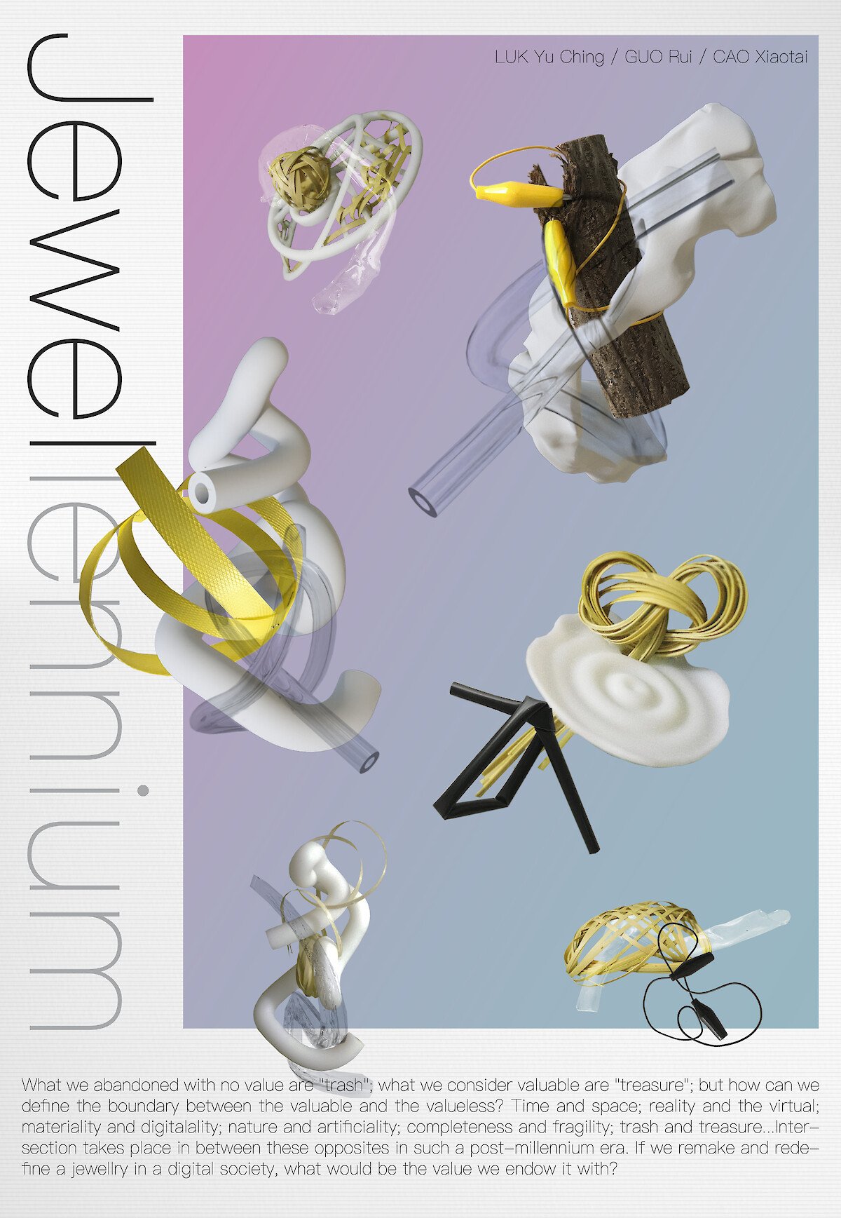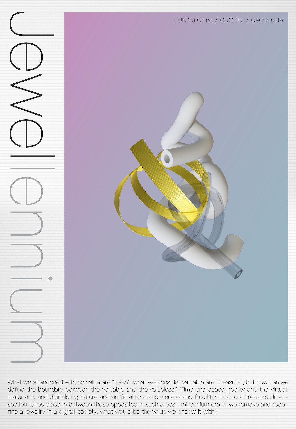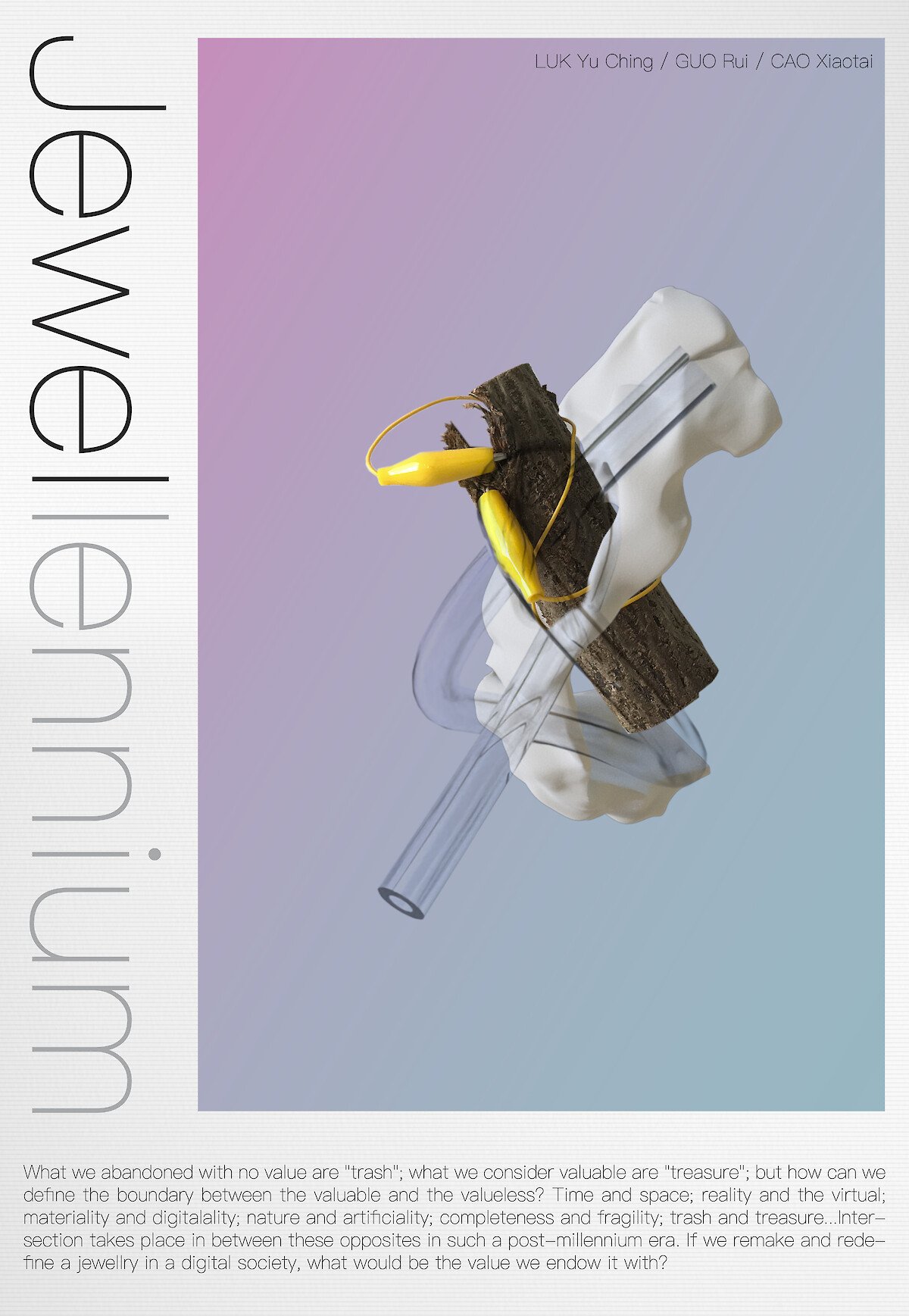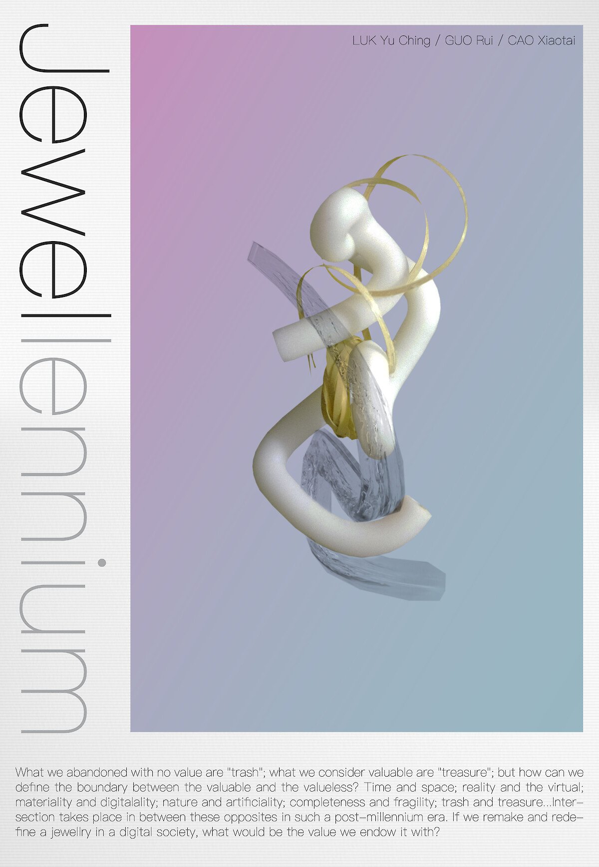 Our project name “Jewellennium” is combined from Jewellery and Millennium, simply implying that we are to discuss the valuable things in craft in our digital, post-millennium society relating to the jewellery culture.