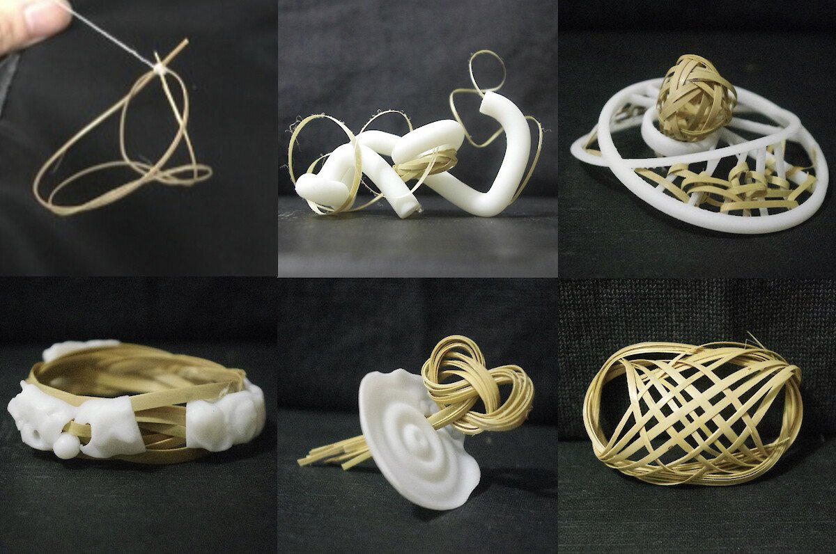 Three of our members are all currently located in East-asia and live with Chinese culture, so we chose a heritage in China called Porcelain-bodied Bambooware(瓷胎竹编), which is also a craft that require work distribution of craftsmen in different art practices. We imitated the materials by 3D printing, studied the bamboo weaving technique, and eventually presented them in the format of jewellery installations.