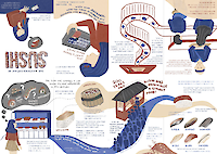 The food group tried to tackle the theme of colonisation in food culture. Is it always related to economic factors? Who owns a certain food culture? How can we learn something about society from food? The discussion touches on glocalisation and cultural appropriation, eventually leading to the bastardisation of food.Through this zine, we ask ourselves and the readers to be conscious and respectful of the tradition and cultural value that are attached to certain food. We focus on one food culture: sushi, as it becomes one of the easiest food to get internationally which also has a deep cultural value. The zine covers the whole history and transformation of the sushi including the change of sushi eating habits through time.